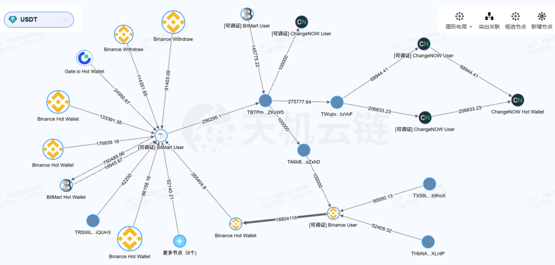 3️⃣标记地址在不同链间的流转,对接BTC、ETH、Tron等多链生态,情报信息挖掘与路径交叉与分散行为识别。